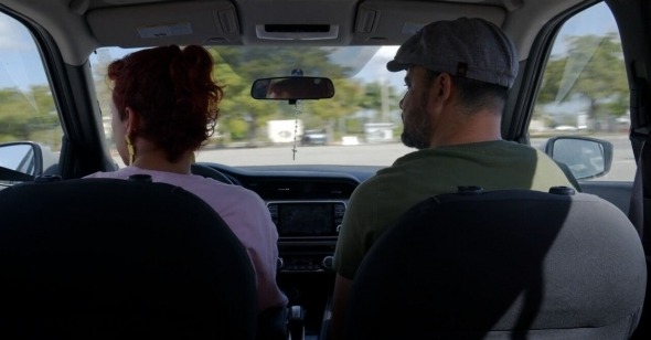 The film is quite a formal achievement, its single 80-plus minute take executed after just one rehearsal, with the director listening from a following vehicle. Texido and Bosch improvised their dialogue from a brief outline and respond to the alternating chaos and longueurs of Miami traffic, embedding the high melodrama of confession and catharsis in the banal rhythms of rolling stops and slow merges. The driving-lessons conceit is a bit of misdirection, as Fanny takes just a couple circuits around the lot before shifting gears into park so she and Frank can have a real conversation—but there’s a logic to this choice. What’s more American, after all, than pulling into a parking space and crying in your car?