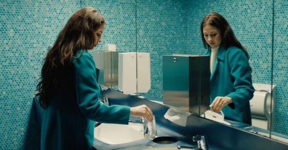 Across its runtime, The Currents refuses straightforward answers to these questions. In the aftermath of her icy plunge, which she conceals from her husband and daughter, Lina becomes physically repelled by the sound and touch of flowing water. A significant part of her readjustment thus involves negotiating the practical consequences of this new situation—such as her inability to care for her daughter as she bathes, and the complications this introduces into her marital sex life. These details, and others like it, might incline one to see Lina’s hydrophobia as a kind of metaphor—a body-horror stand-in for her alienation from her upper-crust existence. Yet Mumenthaler concretizes Lina’s dilemma in ways that push against such a neat reading. Turning away from her social circles, Lina seeks help from an old acquaintance, Amalia, with whom she shares an evidently significant, though largely unspecified history. A hairdresser by profession, Amalia helps Lina by putting her under with gas, washing her hair, and then cleaning her nude body—an act that registers like nothing so much as the preparation of a corpse. This is also to say that if Lina’s phobia is a metaphor, it is one whose significance is much less straightforward than it may at first seem.